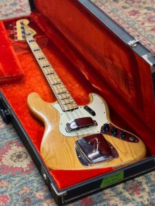 Up for sale we have a 1973 Fender Jazz Bass in original Natural finish with original black Tolex hardshell case. Made in Fullerton, CA. 4-bolt Maple neck with blocks and binding. All parts original to the instrument to the best of our knowledge. The bass is in excellent used condition showing only moderate cosmetic wear with small dings and dents throughout as well as some finish checking (mostly on the backside of the body). Overall a great example…